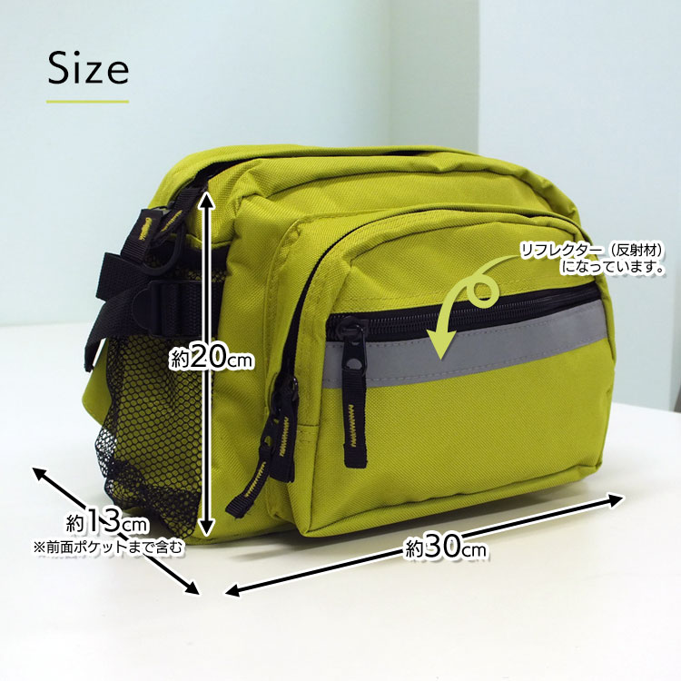 お役立ち2WAYウエストバッグ(ライムグリーン)|ウエスト&ショルダー2WAY仕様・反射テープ付・防災バッグにも