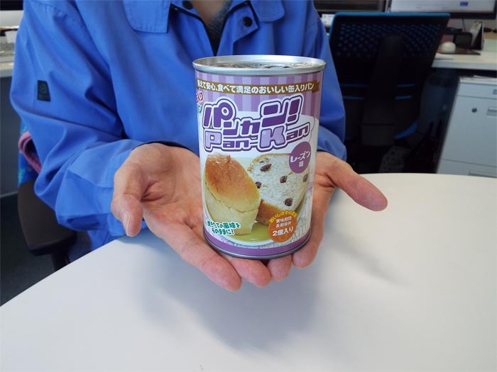 こちら、災害備蓄用パンは防災館のロングセラー!。