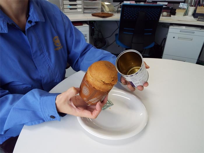 | 食感 | とてもしっとりしていました。このしっとり感は、缶詰に入っていたなんて、聞かないとわからないと思います。 |